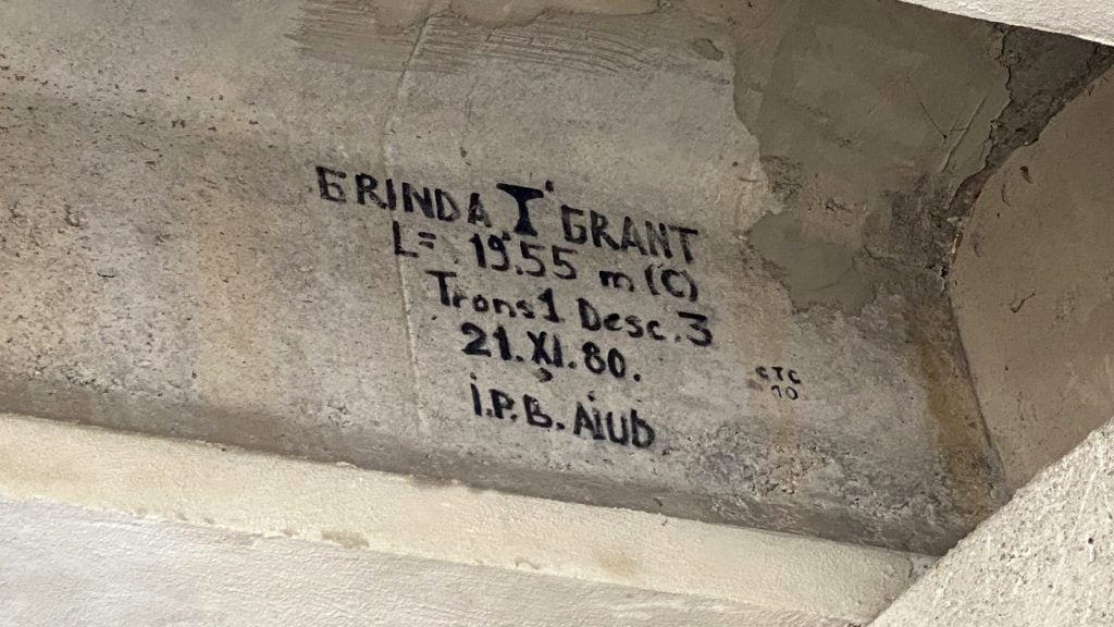 Inclusiv acum se văd marcajele sub pod la unele grinzi ce au data la care au fost montate. De exemplu, în poza de mai jos, grinda a fost făcută la Aiud și montată pe 21 noiembrie 1980.