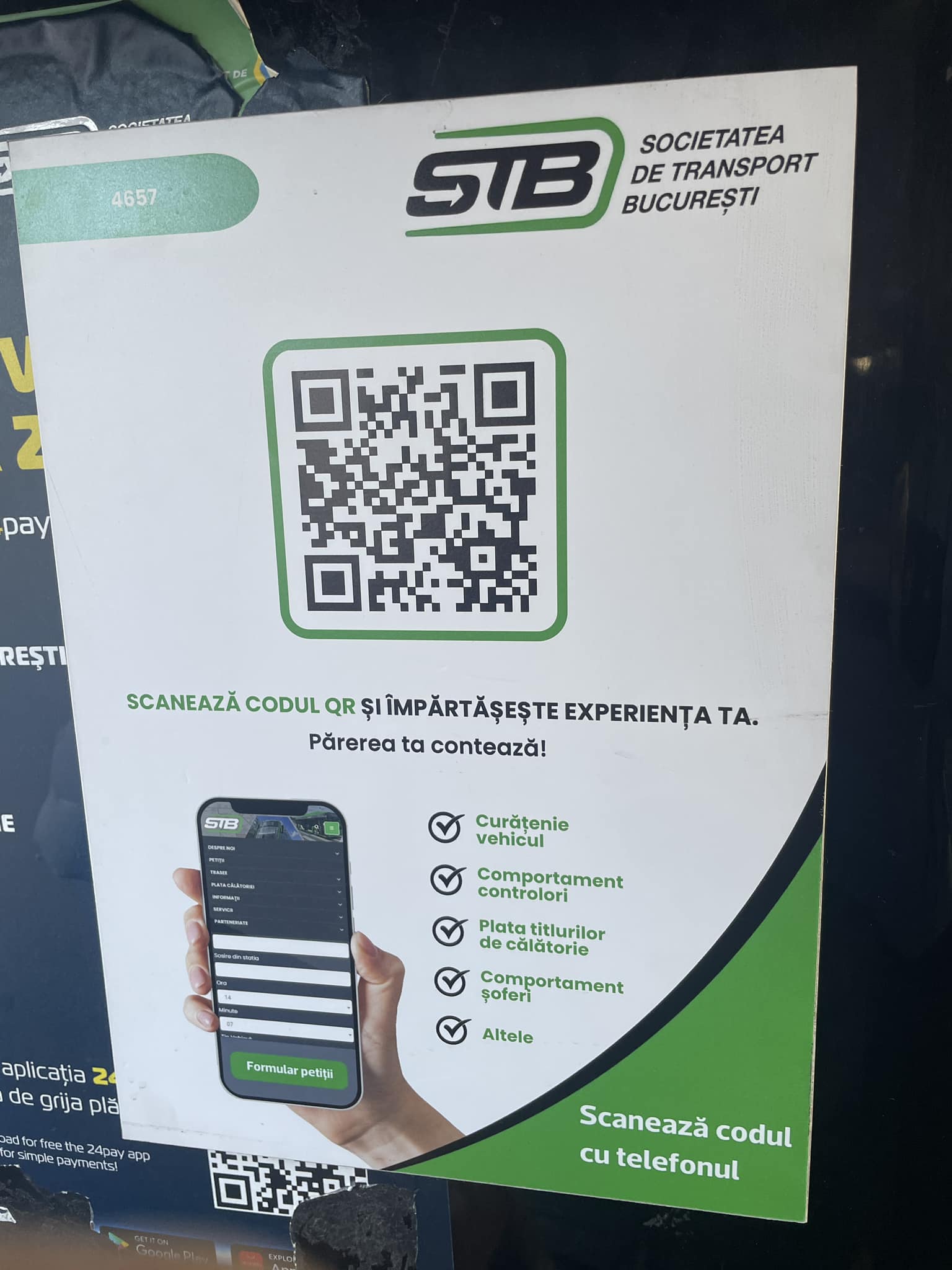 Dacă observi un scaun rupt în autobuzul pe care-l folosești zilnic sau o șină de tramvai deteriorată, poți face o sesizare rapidă. Tot ce trebuie să faci este să scanezi codul QR de pe afișele din mijloacele de transport STB. Călătorii pot raporta diverse nereguli și pot oferi feedback direct prin telefon, accesând link-ul care se deschide la scanarea codului.
