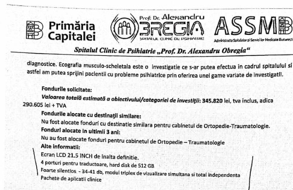 „Singura problemă era să ne încadrăm într-un anumit buget la PNRR și era o oportunitate să luăm un aparat bun. Acum, nu știu ce a înțeles medicul, că am schimbat actele de vreo șase ori. Ba găsea un ecograf, ba nu era bun, revenea, și până la urmă, ca să scăpăm de lucrurile astea, am trimis hârtiile, în speranța că se va concretiza și ambulatoriul nostru va beneficia de o aparatură performantă”, a adăugat directorul medical de la „Obregia”.