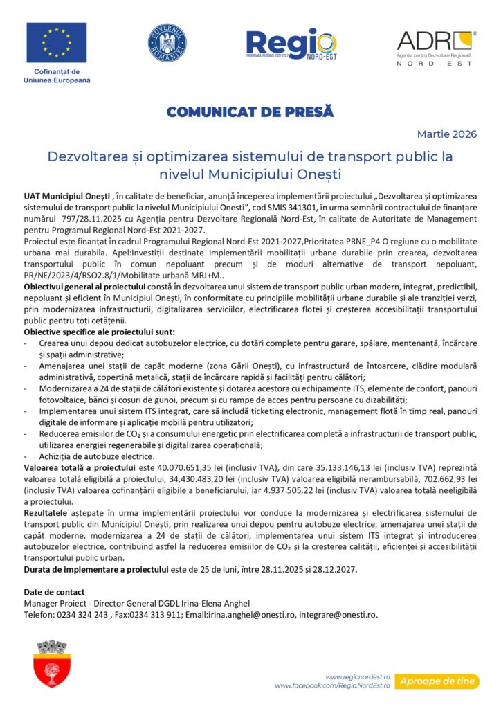 Dezvoltarea și optimizarea sistemului de transport public la nivelul Municipiului Onești ActualitateDezvoltarea și optimizarea sistemului de transport public la nivelul Municipiului Onești FacebookTwitterPinterestWhatsApp De: GDB martie 17, 2026 Vezi si alte articole... Găsește Combustibilul și Stilul Potrivit pentru Casa Ta martie 17, 2026 Subiecte Română – simulare Evaluarea Națională clasa a VIII-a 2026 martie 17, 2026 Simularea Evaluării Naţionale începe luni, cu proba de Limba şi Literatura Română martie 17, 2026 FacebookTwitterPinterestWhatsApp