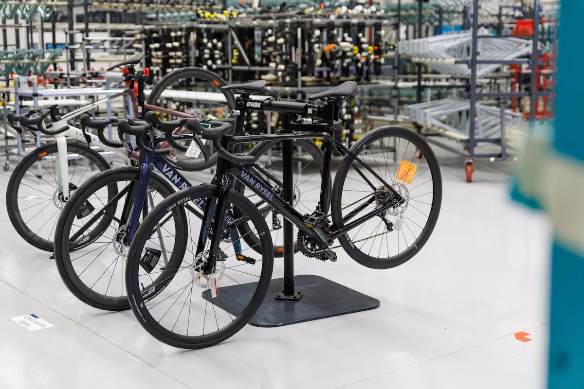 Procesul de asamblare include mai multe etape succesive, de la montarea componentelor, vopsire, producția de jante și asamblarea roților până la reglajele finale, fiecare bicicletă fiind verificată atent, înainte de a părăsi linia de producție.