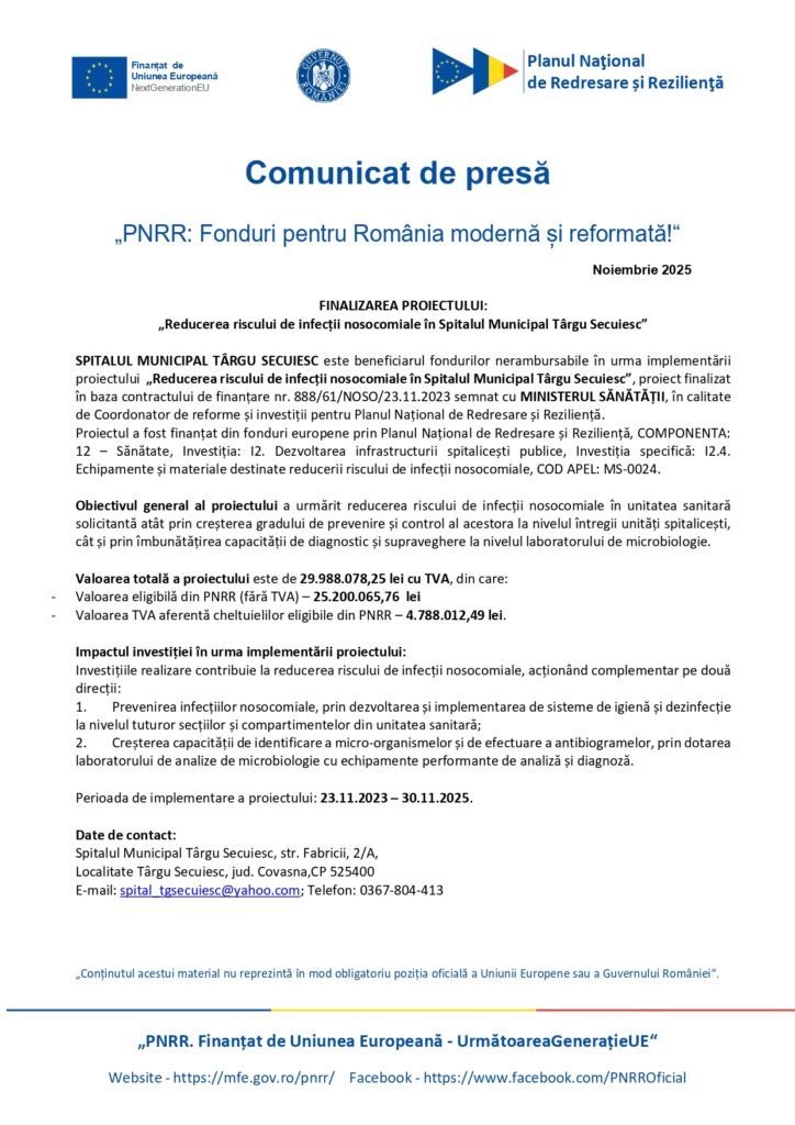 FINALIZAREA PROIECTULUI: „Reducerea riscului de infecții nosocomiale în Spitalul Municipal Târgu Secuiesc” ActualitateFINALIZAREA PROIECTULUI: „Reducerea riscului de infecții nosocomiale în Spitalul Municipal Târgu Secuiesc” FacebookTwitterPinterestWhatsApp De: GDB noiembrie 18, 2025 Vezi si alte articole... Daniel David: „Corabia educației a ieșit din furtuna fiscal-bugetară” – urmează reconstrucția fondului de burse noiembrie 18, 2025 Canon susține un proiect științific de conservare a recifelor de corali, alături de Coral Spawning Lab și Nature Seychelles noiembrie 18, 2025 Mario De Mezzo vrea să pună în cârca directorilor reparaţiile de la şcoli. Hotărârea prin care unităţile trebuie să întreţină clădirile în care funcţionează,... noiembrie 18, 2025 FacebookTwitterPinterestWhatsApp