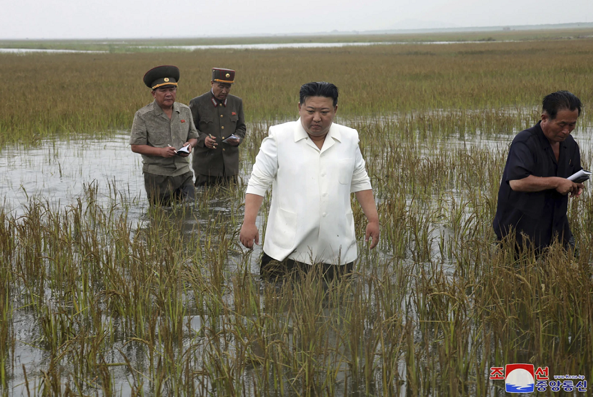 Dictatorul a vizitat luni o zonă de coastă, în vest, unde apa mării a distrus digul şi a inundat peste 270 de hectare de parcele cu orez.