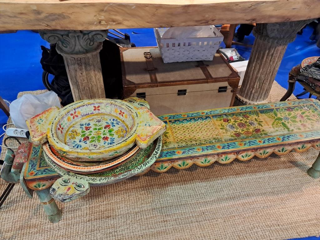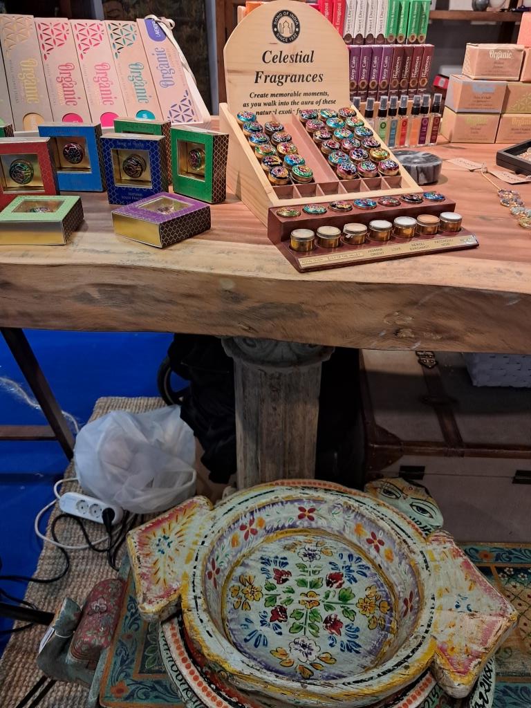 Lumânări decorative, bețișoare parfumate, suporturi, tăvi, farfurii, mici obiecte decorative stau alături de piese de mobilier și accesorii (scaune, măsuțe, oglinzi, panouri sculptate, etc.), multe fiind ornamentate cu picturi și sculpturi realizate manual specifice stilului tradițional indian. Nu mai puțin importante pentru această perioadă sunt obiectele de lifestyle și podoabe: brățări, bijuterii, parfumuri solide cu arome cu tentă exotică. Din păcate, Salonul se mai pote vizita doar astăzi și duminică (mâine se închide).