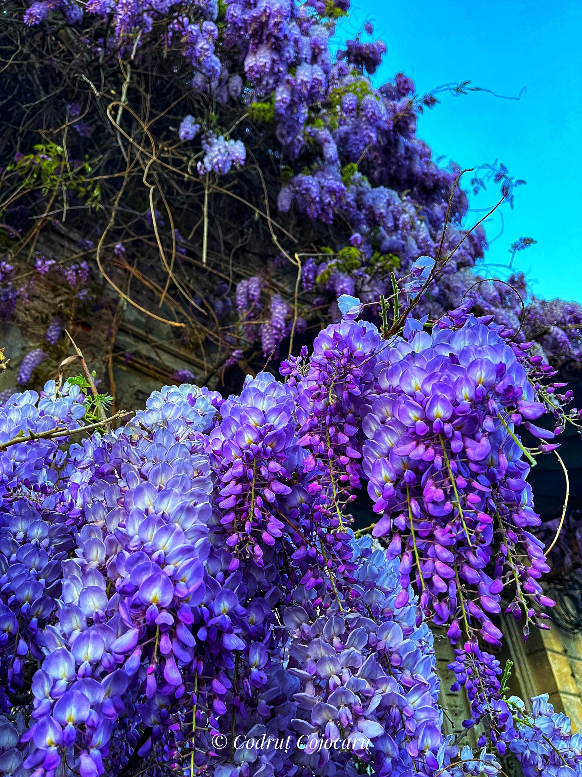 Floarea de glicină mov (dar și cele albe sau roz) seamănă cu florile de salcâm, dar sunt mult mai mari și rezistă mult mai mult timp. Glicina mov înflorește în mod normal, la finele lunii aprilie, începutul lui mai. De mai bine de 3-4 ani încoace schimbările climatice au obligat planta să înflorească mult mai devreme, cel puțin în partea de sud și de sud vest a țării. În 2023 a înflorit la București, înainte de 15 aprilie, în nordul României la finele lui aprilie. În 2024 a înflorit la finele lui martie în București, în vestul țării în primele zile din aprilie, iar în nord undeva după 10-15 aprilie.