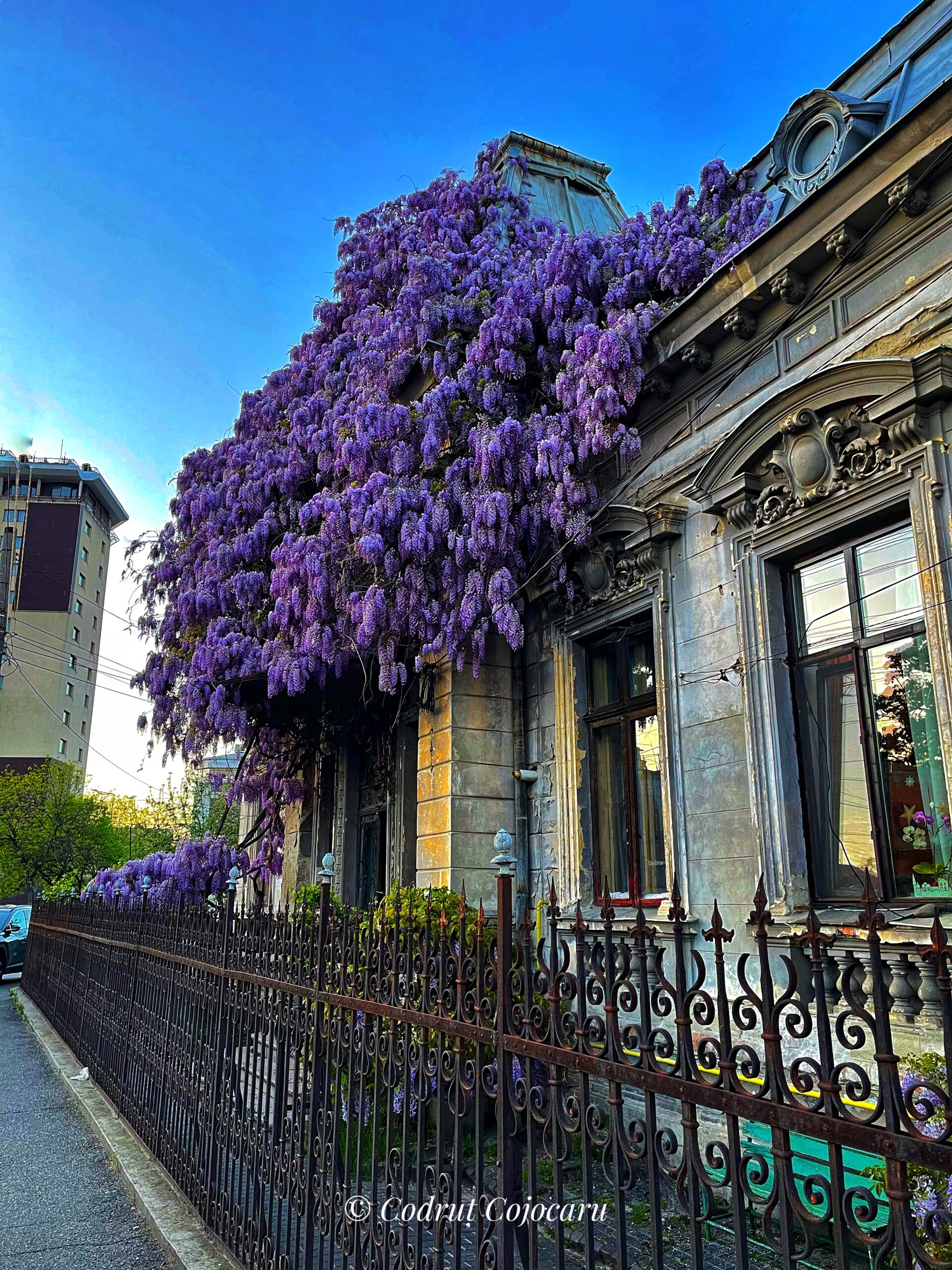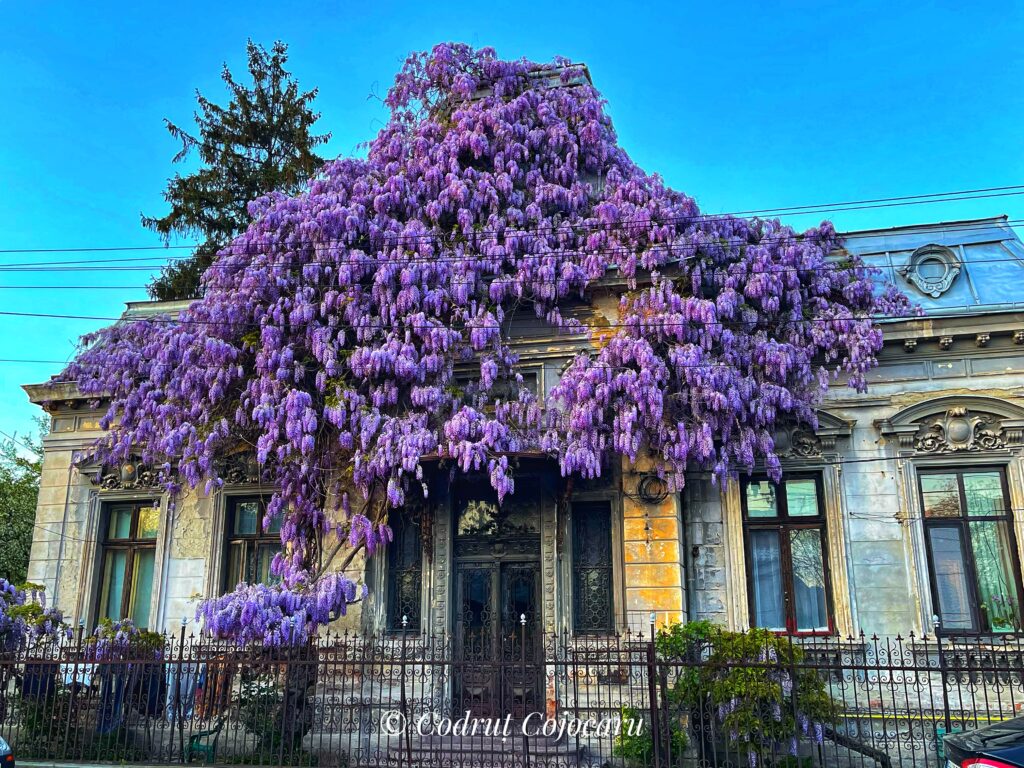 Înscris în lista monumentelor istorice, imobilul atrage privirile trecătorilor, dar nu prin arhitectura deosebită, ci prin frumusețea florilor de glicină, care acoperă o bună parte din fațada casei, dar și din acoperiș.