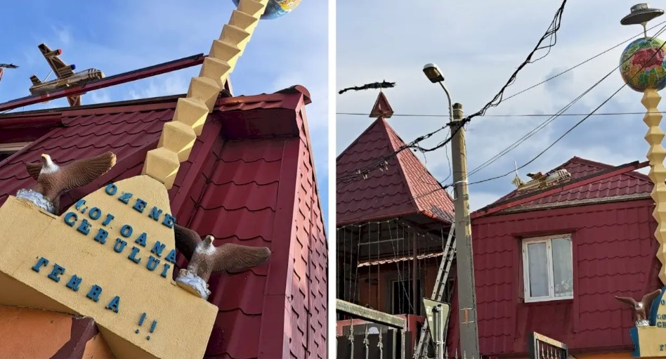 Casa are și o altă decorațiune pe acoperiș, un avion care pare că vrea să decoleze. Însă cel mai impresionant ornament este Lupul dacic! Acesta este amplasat în vârful cel mai înalt al acoperișului. O internaută a făcut o conexiune între lup și OZN și a scris în mod ironic: