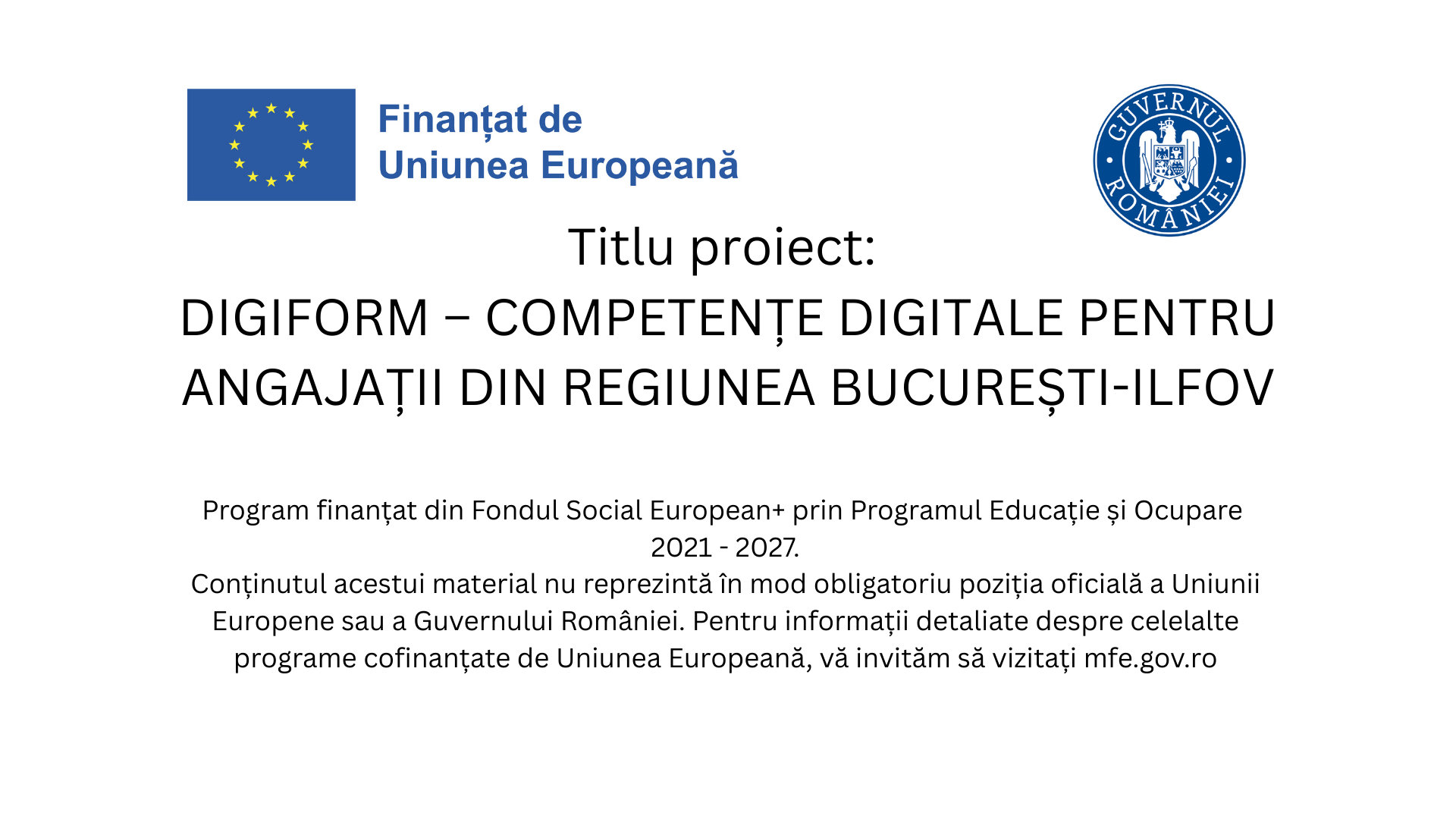 DIGIFORM – COMPETENȚE DIGITALE PENTRU ANGAJAȚII DIN REGIUNEA BUCUREȘTI-ILFOV, proiect finanțat din Fondul Social European+ prin programul Educație și Ocupare 2021-2027 (COD PROIECT: 311837) pune accent pe ideea că formarea continuă nu este un “bonus”, ci o investiție directă în competitivitate.