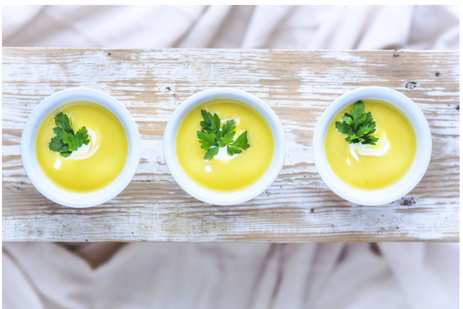 Supa cremă de praz oferă energie datorită carbohidraților din cartofi și grăsimilor sănătoase din unt.