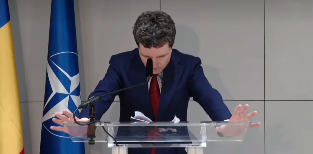Nicușor Dan a devenit confuz, s-a emoționat și și-a îndreptat privirea spre pământ. Apoi a început să gesticuleze cu mâinile cu care se ținea de pupitru. După mai multe încercări, președintele a bolborosit câteva cuvinte: „pentru moment“ și „haideți să, aaaaa”.